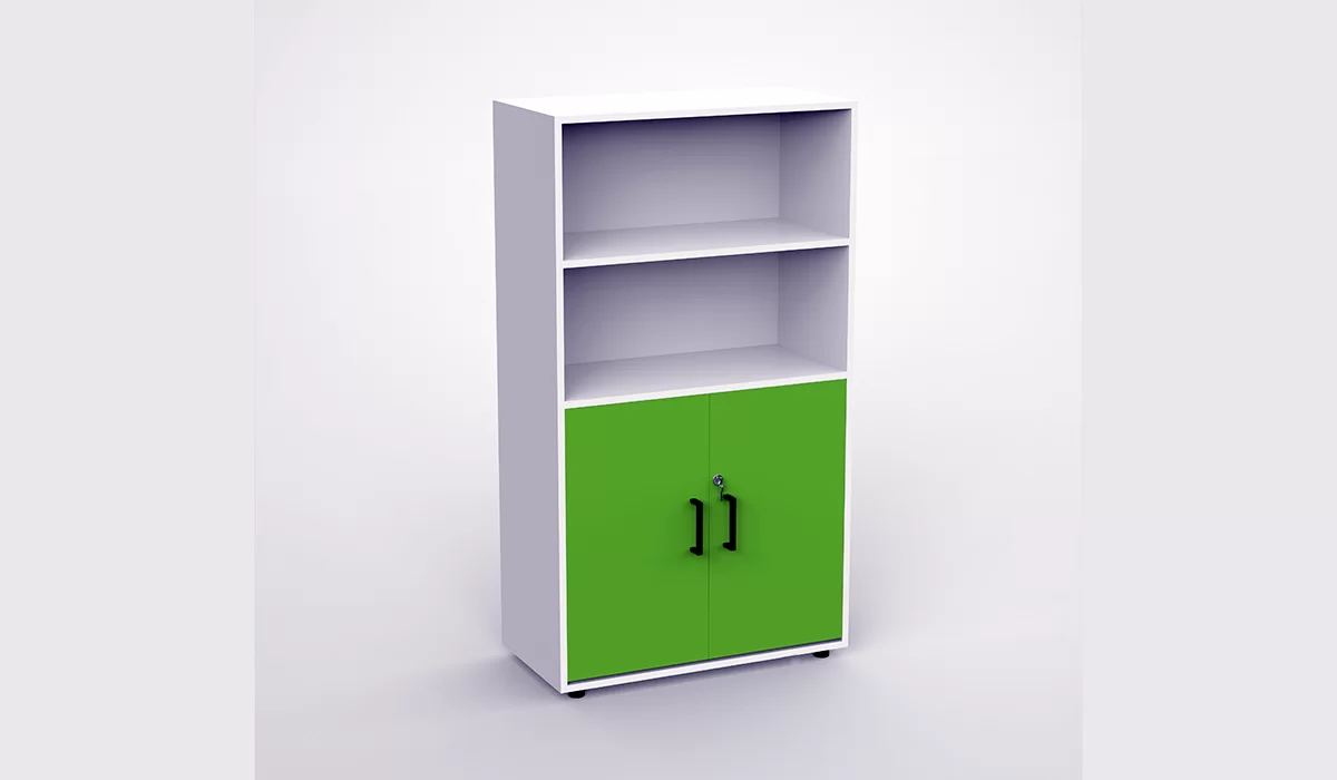 YUCAI® YCW-21208 上空格下掩門圖書櫃尺寸:W900xD450xH1580mm [每層高度約360mm]門板顏色:紅色 / 橙黃 / 果綠 / 藍色 / 白/ 灰綠 ;其他部份:白分配:上、下各兩層;共四層特點:可分類擺放書籍、資料、檔案、硬皮快勞。同一高度可左右合拼使用的書櫃有:
